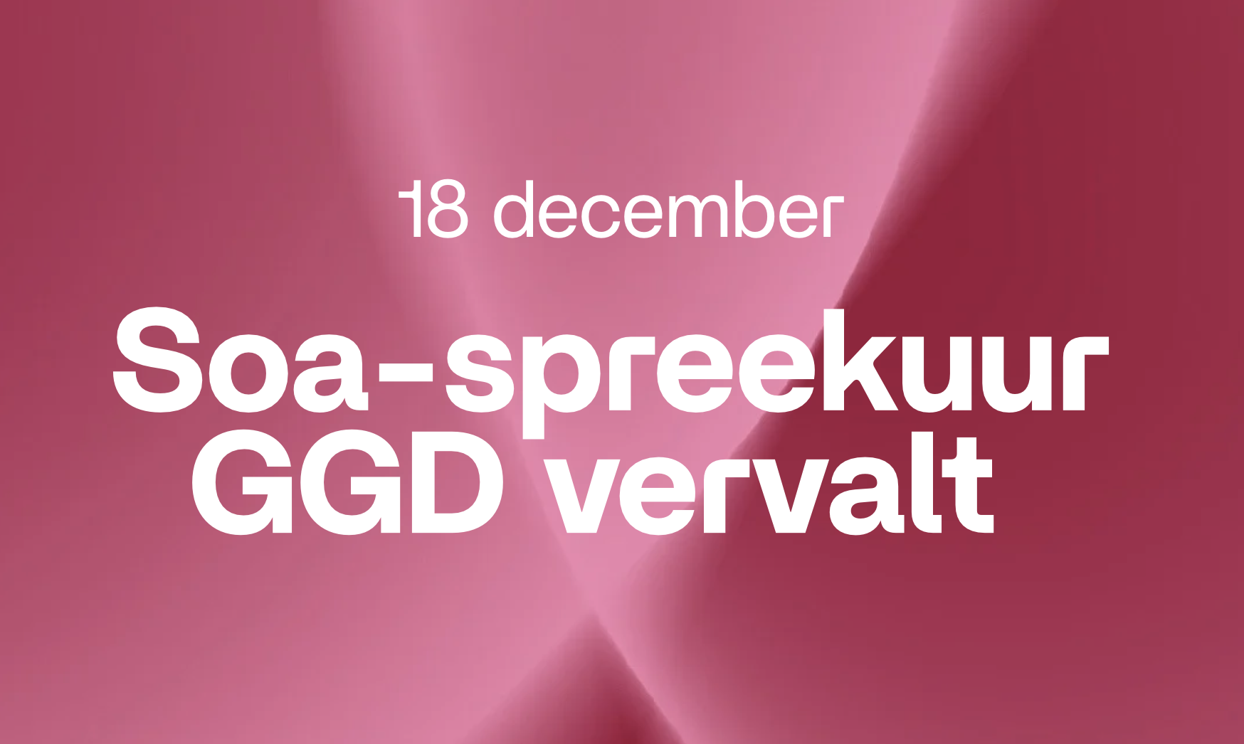 Wegens omstandigheden komt het soa-spreekuur van de GGD donderdag 18 december te vervallen. Er kan helaas NIET getest worden.